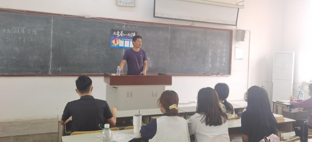 张五洲老师为2021级新生做了主题为安全和员工公寓管理规定专题教育讲座。寇鲁欢老师为2021级新生开展主题为奖助学金政策讲解和员工违纪处分条例专题教育讲座。王卫红、马永通老师为2021级武术与民族传统体育专业、健康服务与管理专业新生开展学分制、专业教育主题讲座。